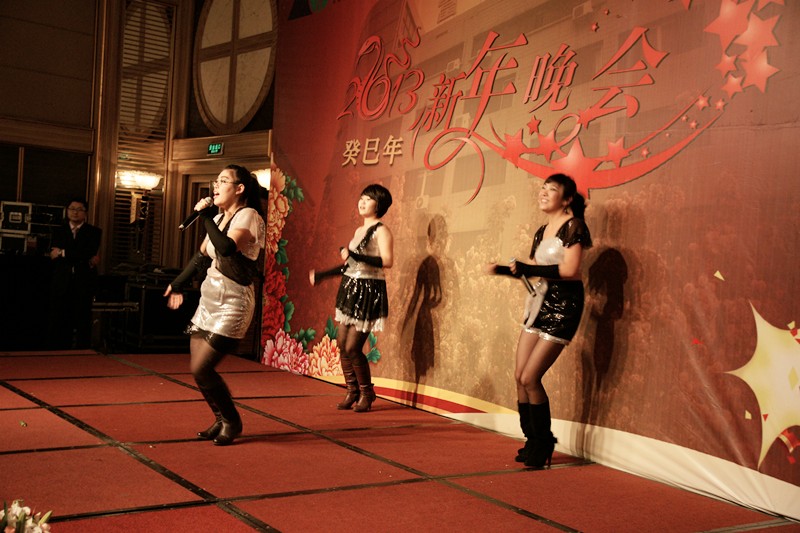 大会结束后,集团在汇泉王朝大饭店宴会厅举行了迎新春联谊晚宴。晚宴过程中,集团各公司员工表演了歌唱、舞蹈、小品、魔术等各类精彩的文艺节目。