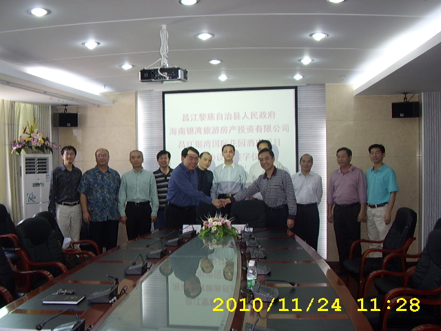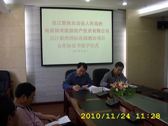 上午,签字仪式在县政府会议室举行。孙久学董事长代表海南昌江银湾旅游房产投资有限公司,符礼伟县长代表昌江县政府,在协议上签字。孙久学董事长向县政府汇报了公司情况及项目开发思路和方案。符礼伟县长介绍了昌江县近几年的发展情况与规划思路,对公司选择在昌江投资表示感谢,并表示将会全力支持项目的开发建设。