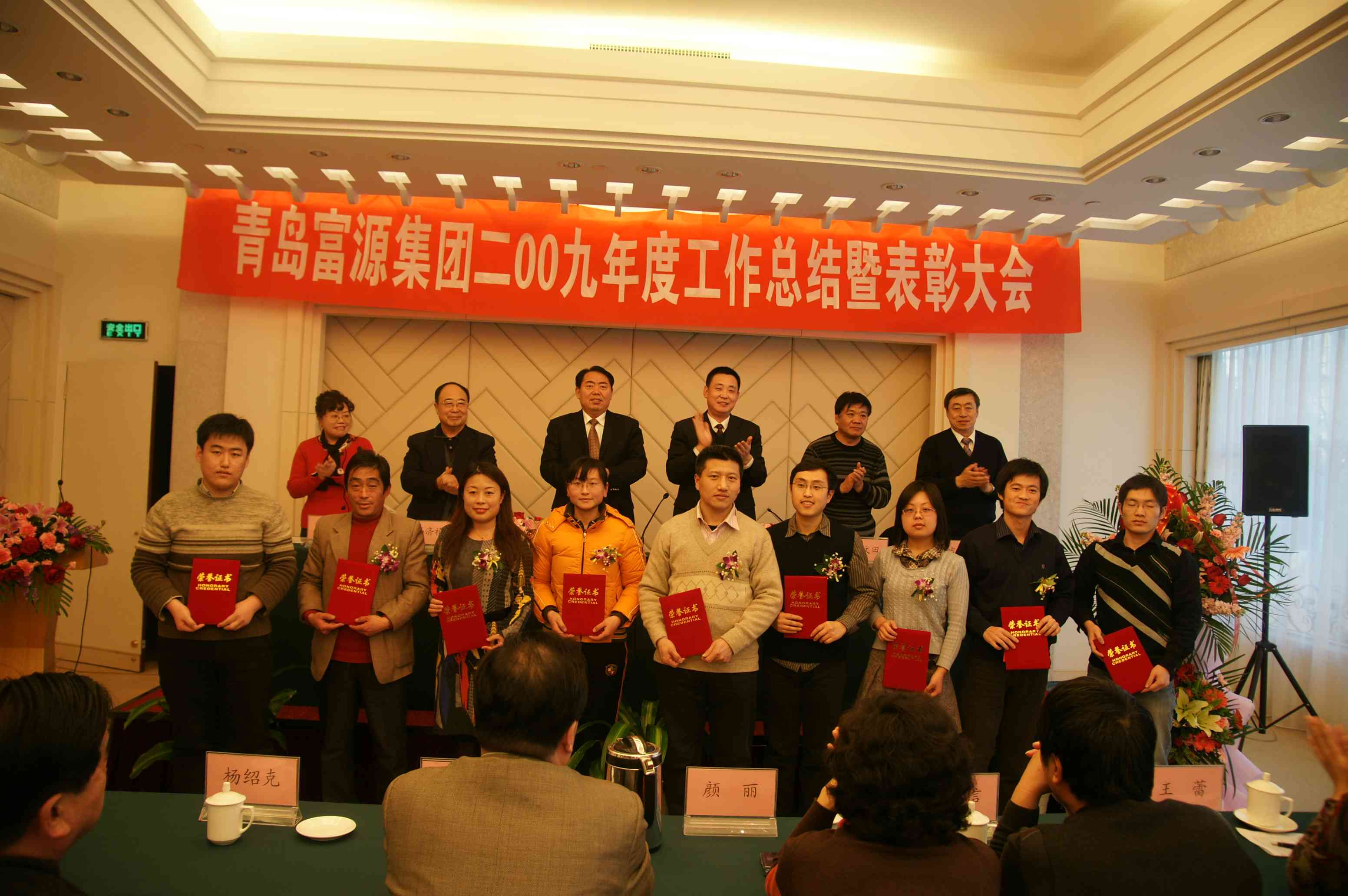 2010年1月29日,青岛富源集团二〇〇九年度工作总结暨表彰大会在黄海饭店举行。集团董事长、总裁孙久学,副总裁王文忠、隋和媛、王文田、刘吉豪,集团顾问冯济祯等领导出席会议并在主席台就座。集团各公司、部门、工厂代表共120余人参加会议。会议由隋和媛副总裁主持。