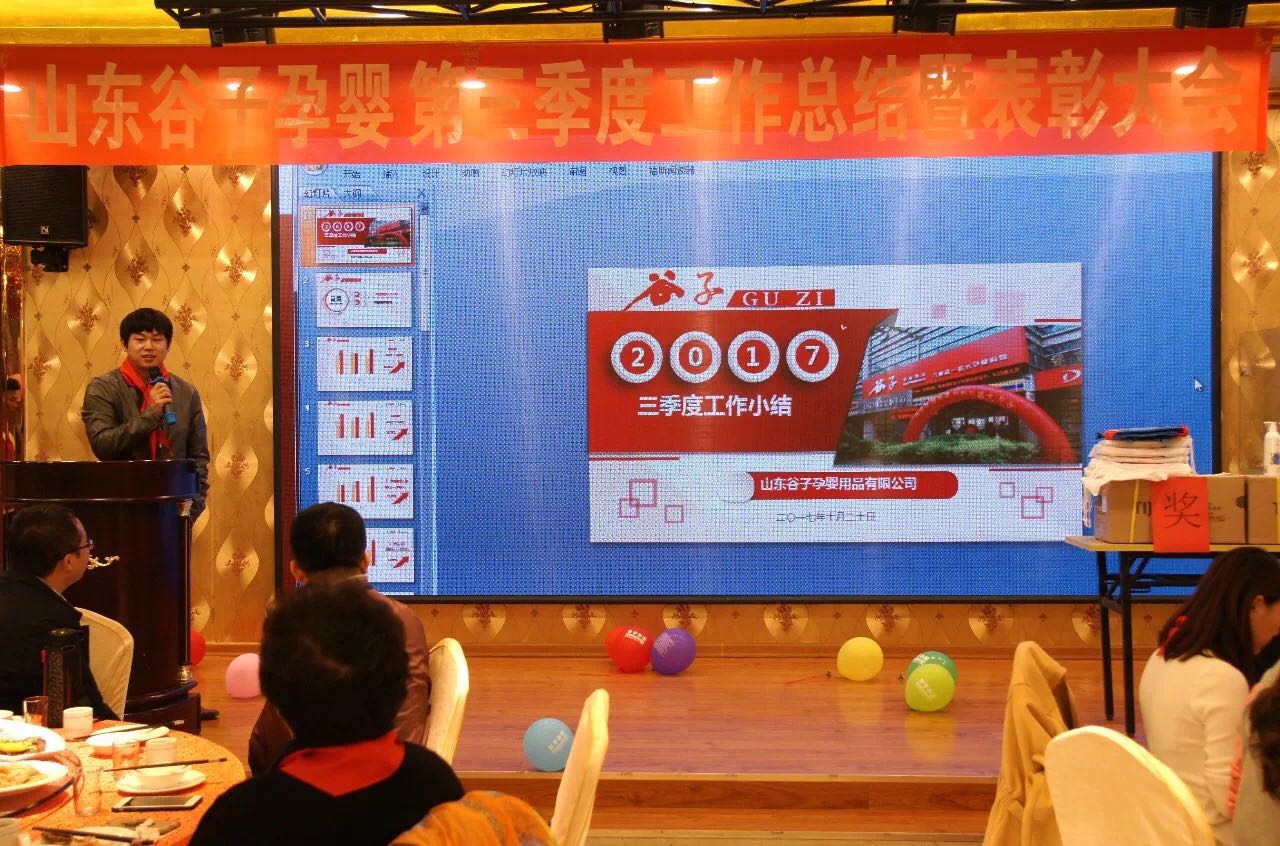 谷子孕婴总经理杜咏霖先生总结了谷子三季度的工作情况,谷子销售额又创新高,在岛城孕婴行业知名度不断扩大,面对市场竞争激烈的四季度,谷子已整装待发,不惧挑战,再创新辉煌。