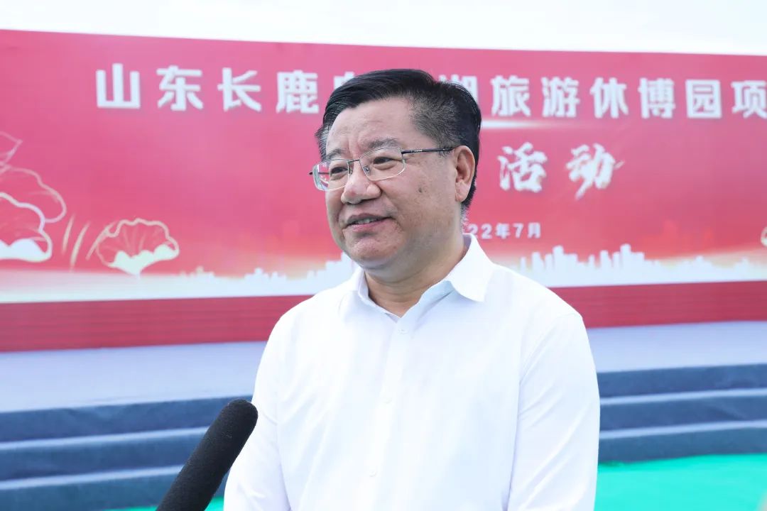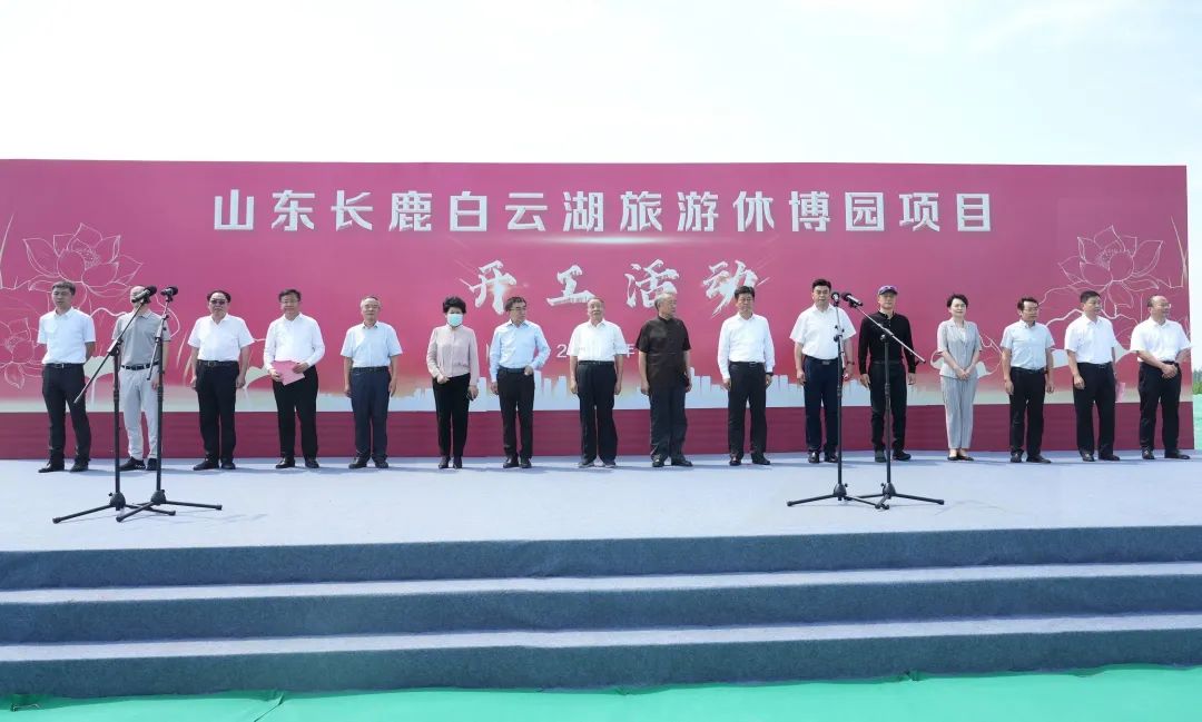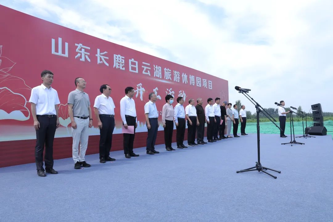 7月18日上午,山东长鹿白云湖旅游休博园项目开工活动在济南市章丘区白云湖举行。中共中央秘书局原局长、中共中央编办原副主任王澜明,文化部原副部长周和平,国家旅游局原副局长吴文学,济南市副市长马保岭,济南市文旅局局长郅良,山东旅游职业学院党委书记陈国忠,山东省文化和旅游厅资源开发处处长赵勇,章丘区委书记马志勇、区政协主席李宝燕、副区长赵淑新、白云湖街道党工委书记柴大奎以及章丘区委办、区发改局、自然资源局、住建局、文旅局、城乡水务局、园林和林业绿化局、投促局、行政审批服务局、建投公司等领导嘉宾出席仪式。