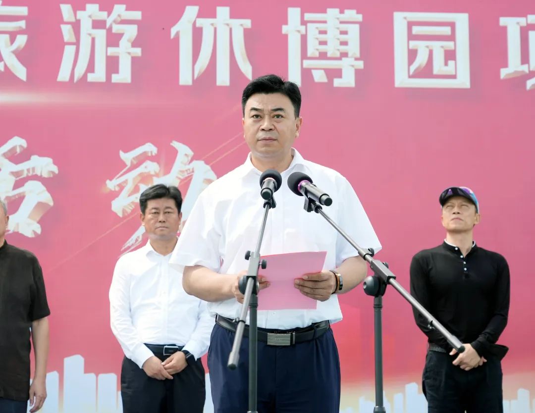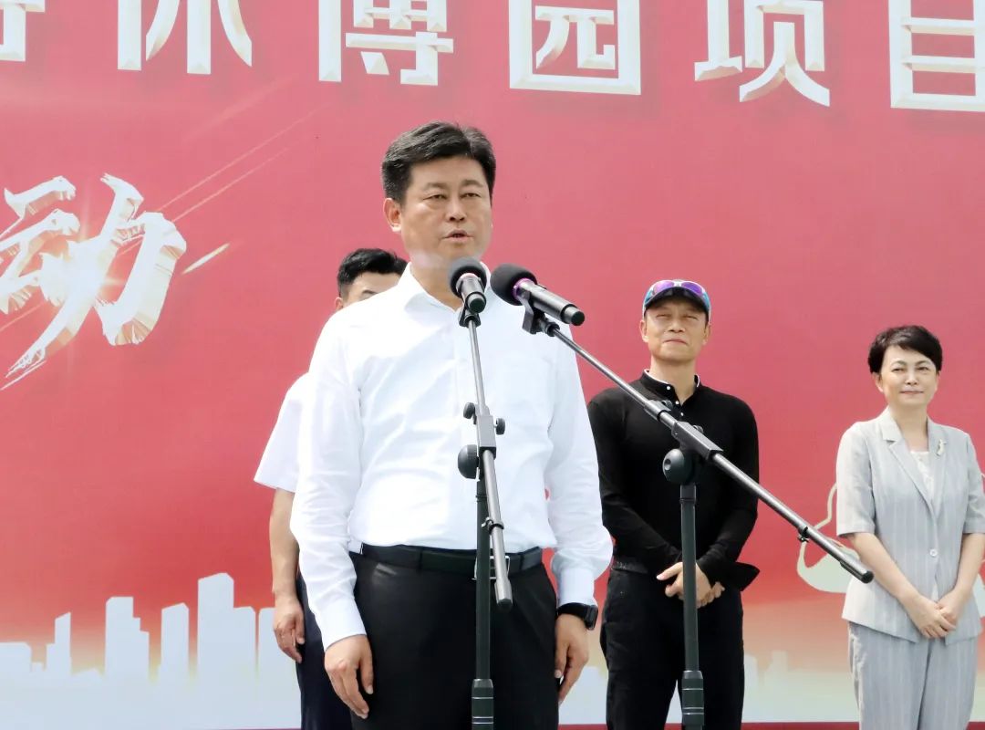 章丘区委书记马志勇致辞,他表示,此次山东长鹿白云湖旅游休博园项目顺利开工,既是践行“两山理论”的生动实践,也标志着长鹿和章丘的合作结出了真诚的果实,更为章丘全域旅游发展增添新亮点、新动能、新活力,进一步推动章丘文旅产业再上新台阶、再创新局面。希望投资方和建设单位严格按照技术标准和质量要求,争分夺秒抢进度、一丝不苟提质量、严守底线抓安全,高标准建设、高效率推进、高质量完工,确保项目建成精品工程、样板工程。