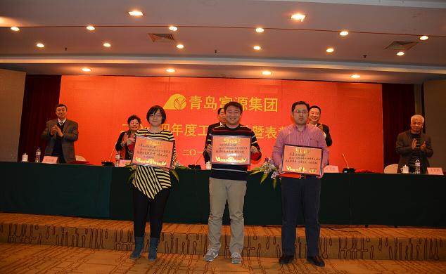 2015年2月6日,青岛富源集团2014年度工作总结暨表彰大会在海情大酒店举行。集团董事长、总裁孙久学,副总裁王文忠、隋和媛、王文田、刘吉豪出席会议并在主席台就座。集团各公司、部门、工厂代表共150余人参加了会议。会议由隋和媛副总裁主持。