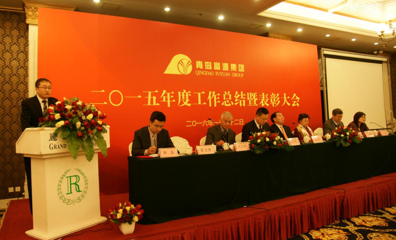 2016年1月22日,青岛富源集团2015年度工作总结暨表彰大会在丽晶大酒店举行。集团董事长、总裁孙久学,副总裁王文忠、隋和媛、王文田、刘吉豪、崔文涛、王蕾、韩磊出席会议并在主席台就座。集团各公司、部门代表共200余人参加了会议。会议由王蕾副总裁主持。