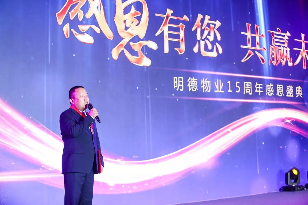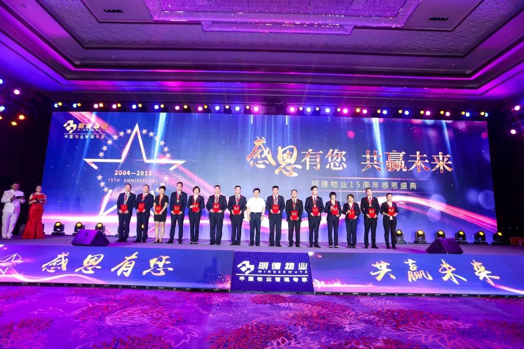 6月29日19时,明德物业十五周年感恩盛典在济南隆重举行。明德物业成立至今已经15周年,在本次盛典上,共颁发资深贡献奖、最具忠诚奖、明德工匠、最佳经理人、创业先锋奖等奖项,向一直以来爱岗敬业、一路追随的明德员工致敬。盛典现场气氛热烈,明德员工与嘉宾欢聚一堂,共同庆祝明德物业成立15周年。